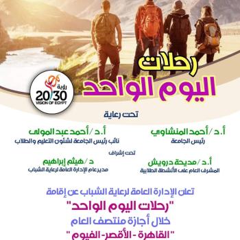 إدارة النشاط الإجتماعي والرحلات بالتعاون مع اتحاد طلاب جامعة اسيوط .. تعلن عن إقامة "رحلات اليوم الواحد" خلال أجازة منتصف العام الى القاهرة
