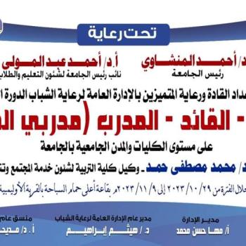 تنظم إدارة إعداد القادة ورعاية المتميزين بالإدارة العامة لرعاية الشباب ... الدورة التدريبية بعنوان الطالب - القائد - المدرب " مدربي المستقبل "على مستوى الكليات والمدن الجامعية بجامعة اسيوط