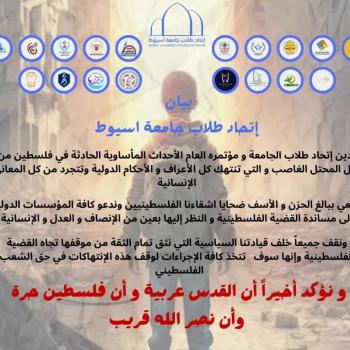 بيان اتحاد طلاب جامعة أسيوط ومؤتمره العام نوكد ان القدس عربية وان فلسطين حرة وان نصر الله قريب
