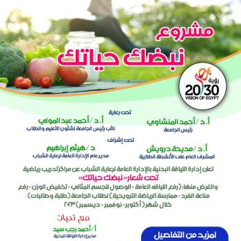 إدارة اللياقة البدنية بالإدارة العامة لرعاية الشباب تعلن عن مراكز تدريب رياضية تحت شعار " نبضك حياتك" خلال شهر (أكتوبر-نوفمبر-ديسمبر)٢٠٢٣