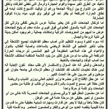 أسبوع الشباب في الميزان بقلم مهندس / محمد جمعة مدير ادارة الفنون بالادارة العامة لرعاية الشباب