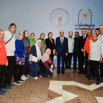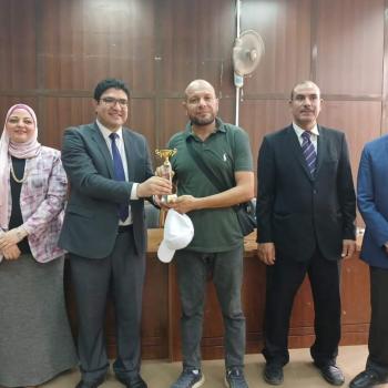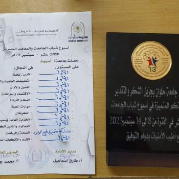إهداء درع مشاركة وفد جامعة أسيوط من جامعة حلوان في أسبوع شباب الجامعات والمعاهد العليا المصرية الثالث عشر بجامعة حلوان