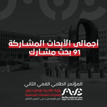 حتى الان الأبحاث المشاركة فى مؤتمر مصر تسطيع بطلابها واحد وتسعين بحث مشارك