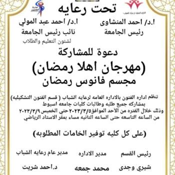إدارة الفنون - قسم الفنون التشكيلية ... دعوة للمشاركة فى مهرجان اهلا رمضان مجسم فانوس رمضان