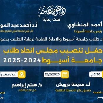 دعوة لحضور جميع الطلاب والطالبات بالجامعة لحضور حفل تنصيب مجلس اتحاد طلاب جامعة أسيوط 2024/2025