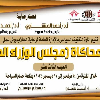 إدارة التثقيف السياسي .. تعلن عن بدء ورش عمل نموذج محاكاة مجلس الوزراء الموسم الثالث عشر وذلك خلال الفترة من ٢٤ نوفمبر الى ١١ ديسمبر ٢٠٢٤م بقاعة حمام السباحة