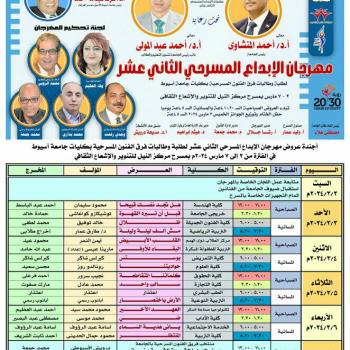 إدارة الفنون .... قسم الفنون المسرحية والموسيقية .... اجندة عروض مهرجان " الإبداع المسرحى الثانى عشر "