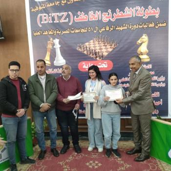 إدارة النشاط الاجتماعي والرحلات بالتعاون مع إدارة النشاط الرياضي بالإدارة العامة لرعاية الشباب .. فعاليات بطولة الشطرنج الخاطف ضمن برنامج دورة الشهيد الرفاعي ال٥١ للجامعات والمعاهد العليا المصرية وفازت جامعة أسيوط بالمركز الثالث طالبات علي مستوي الجامعات