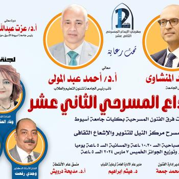 إدارة الفنون .. مهرجان الإبداع المسرحى الثانى عشر لطلبة وطالبات فرق الفنون المسرحية بكليات جامعة اسيوط 2 - 7 مارس بمسرح مركز النيل للتنوير والاشعاع الثقافى تبدء العروض الصباحية الساعة 20 , 10 والمسائية الساعة 5 يوميا حفل الختام وتوزيع الجوائز الخميس 7 م