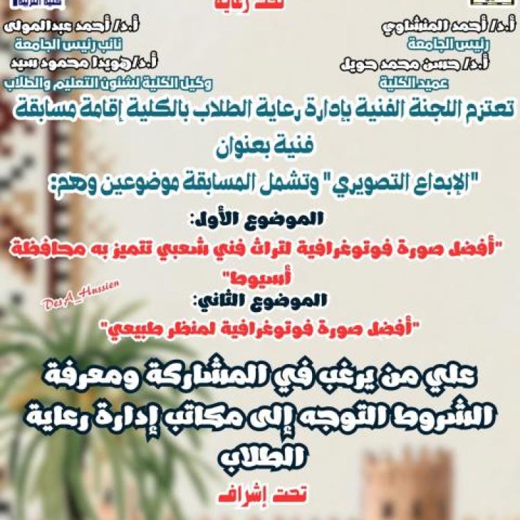 كلية التربية-تعلن اللجنة الفنية لرعاية الطلاب عن إقامة مسابقة فنية بعنوان " الإبداع التصويري "