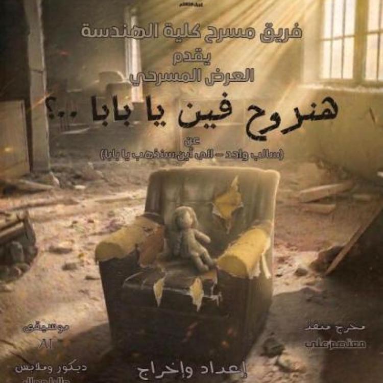 كلية الهندسة - تتشرف إدارة الكلية و فريق المسرح بدعوتكم لحضور العرض المسرحي ( هنروح فين يا بابا ...؟ )