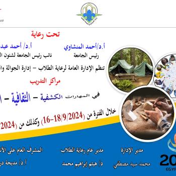 إدارة الجوالة والخدمة العامة بالإدارة العامة لرعاية الطلاب .. دعوة لمشاركة الطلاب في مراكز التدريب في المهارات الكشفية والثقافية والفنية خلال الفترة من ١٦ الى ١٨ سبتمبر وكذلك ايضل خلال الفترة من ٢٣ الى ٢٥ سبتمبر