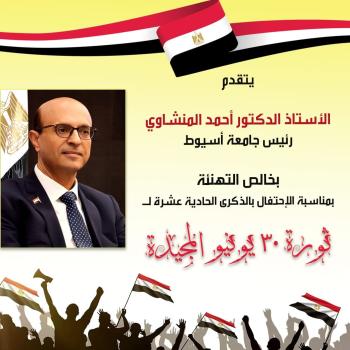 يتقدم الأستاذ الدكتور أحمد المنشاوي رئيس جامعة أسيوط؛ بأصدق التهاني القلبية بمناسبة الذكرى الحادية عشرة لثورة 30 يونيو