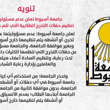 جامعة أسيوط تعلن عدم مسئوليتها عن تنظيم حفلات التخرج الطلابية التي تتم خارج الجامعة