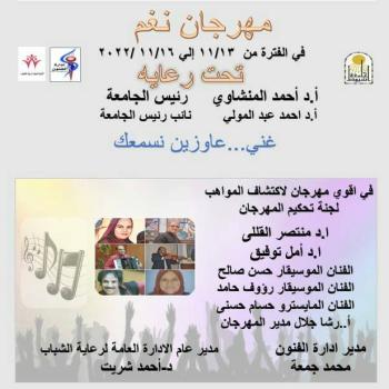 إدارة الفنون .. عزيزى الطالب غني عاوزين نسمعك في أقوى مهرجان لاكتشاف المواهب بمهرجان " نغم " فى الفترة من ١٣ نوفمبر٢٠٢٢م إلي ١٦ نوفمبر٢٠٢٢م