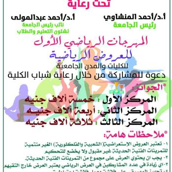 الادارة العامة لرعاية الشباب - إدارة اللياقة البدنية ...دعوة لجميع الكليات والمدن الجامعية المشاركة فى المهرجان الرياضى الأول للعروض الرياضية
