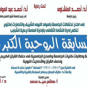 الادارة العامة لرعاية الشاب - ادارة النشاط الثقافى ... تعلن عن بدء فعاليات المسابقة الروحية الكبرى فى حفظ القرآن الكريم والثقافة الإسلامية والأربعين حديث نبوية لجميع طلبة وطالبات جامعة اسيوط.