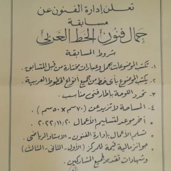 إعلان لجميع طلاب جامعة أسيوط ..الادارة العامة الرعاية الشباب - إدارة الفنون تعلن عن مسابقة جمال فنون الخط العربي