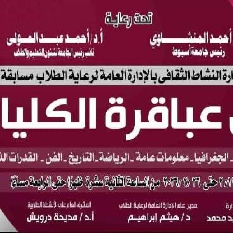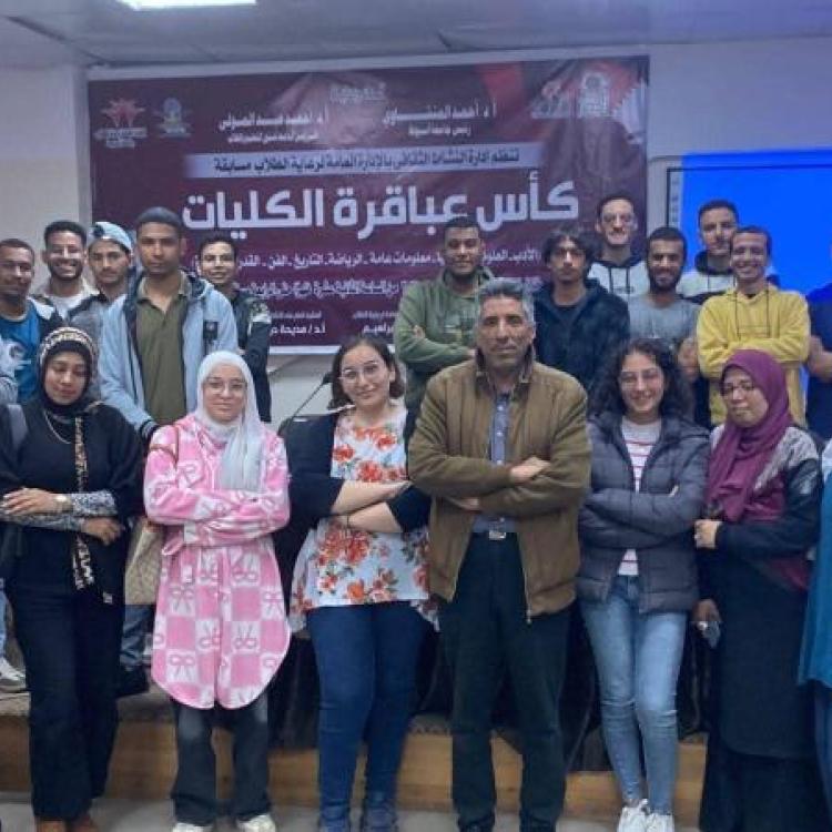 إدارة النشاط الثقافي ... تنظيم مسابقة كأس عباقرة الكليات في مجالات (الأدب – العلوم – الجغرافيا – معلومات عامة – الرياضة – التاريخ – الفن – القدرات الذهنية)