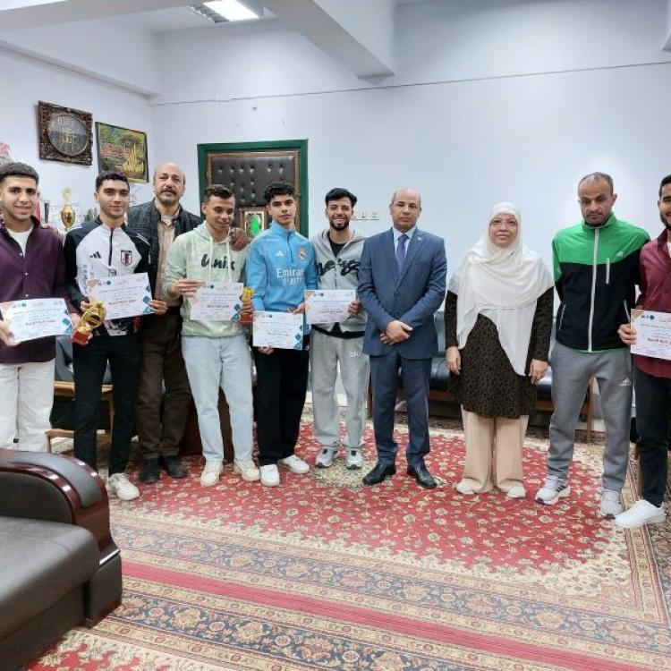 كلية التربية ... تكريم سيادة عميد الكلية للطلاب الفائزين بدورى كلية التربية فى كرة القدم الخماسى .
