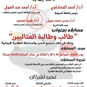 كلية التربية-تعلن عن إقامة مسابقة الطالب والطالبة المثاليين