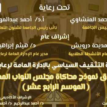 إعلان عن انطلاق نموذج محاكاة مجلس النواب المصري فى موسمه الرابع عشر لطلاب جامعة أسيوط - ادارة التثقيف السياسى بالإدارة العامة لرعاية الطلاب