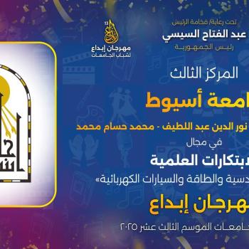 إدارة النشاط الثقافي بالإدارة العامة لرعاية الطلاب..فعاليات حفل ختام مهرجان إبداع ١٣ وتوزيع الجوائز الذي تنظمة وزارة الشباب والرياضة المقام بقاعة المؤتمرات الكبري بمسرح جامعة القاهرة يوم الاحد الموافق ٤ مايو ٢٠٢٥ وحصول جامعة اسيوط على مراكز متقدمة