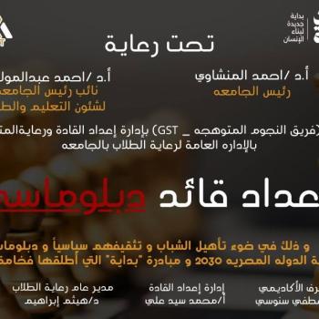 مشاركة وفد من جامعة أسيوط بمعهد إعداد القادة بحلوان على مستوى الجامعات والمعاهد بجمهورية مصر العربية تحت عنوان بناء الوعي الوطني لدي شباب الجامعات إدارة إعداد القادة ورعاية المتميزين بالإدارة العامة لرعاية الطلاب