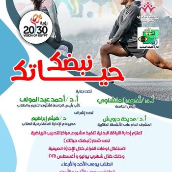 دعوة لمشاركة الطلاب والطالبات بكليات الجامعة في مراكز التدريب تحت شعار نبضك حياتك إدارة اللياقة البدنية بالإدارة العامة لرعاية الطلاب