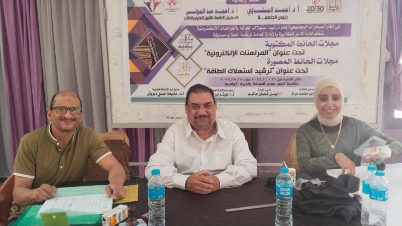 حيث تم تنظيم مسابقة مجلات الحائط المكتوبة تحت عنوان "المراهنات الإلكترونية"، إلى جانب مسابقة مجلات الحائط المصورة تحت عنوان "ترشيد استهلاك الطاقة"، وذلك خلال الفترة من 26/4/2026 إلى 5/5/2026 بقاعة أعلى حمام السباحة بالقرية الأولمبية.