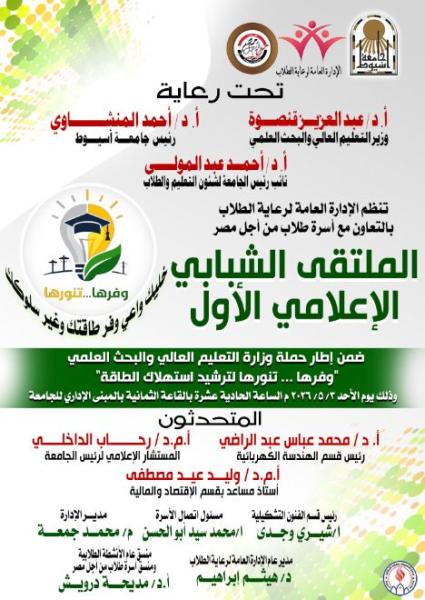الأحد 3 مايو.. انطلاق «الملتقى الشبابي الإعلامي الأول» بجامعة أسيوط لتعزيز دور الإعلام في ترشيد الطاقة والوعي المجتمعي