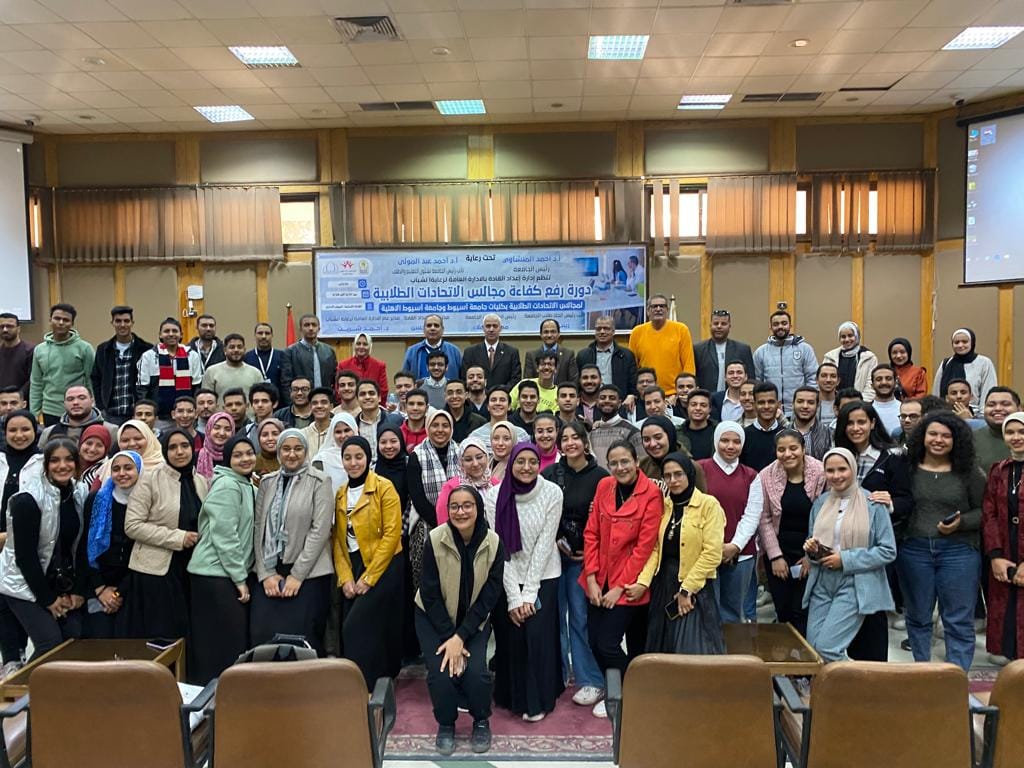 نظمت إدارة اعداد القادة ورعاية المتميزين بالادارة العامة لرعاية الشباب دورة " رفع كفائة مجالس الاتحادات الطلابية " لمجالس الاتحادات الطلابية بكليات جامعة اسيوط وجامعه أسيوط الأهلية وذلك في الفتره من 27 الى 28 فبراير بالقاعة الثمانية بالمبنى الادارى