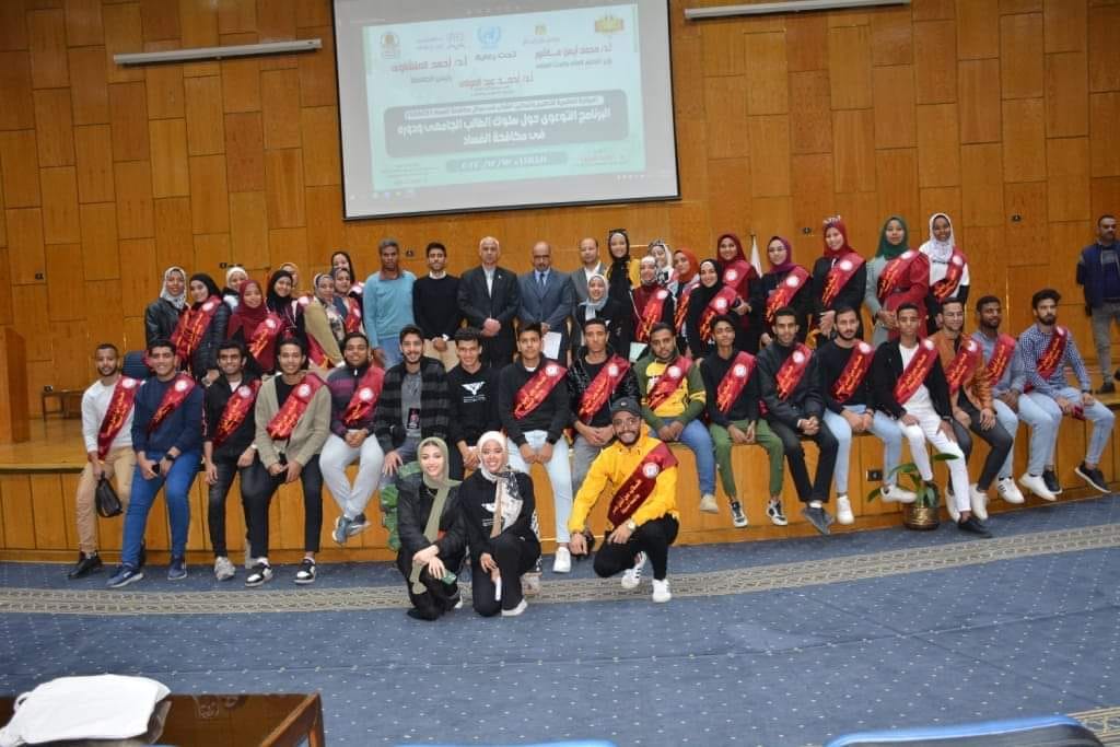 جاء ذلك خلال مشاركة سيادته في فعاليات البرنامج التوعوي للطلاب حول مدونة سلوك الطالب الجامعي والإستراتيجية الوطنية لمكافحة الفساد في إطار المبادرة العالمية للتعليم وتمكين الشباب في مجال مكافحة الفساد وذلك تحت رعاية الدكتور أيمن عاشور وزير التعليم العالي والبحث العلمي وبحضور الدكتورة مها غانم نائب رئيس الجامعة لشئون خدمة المجتمع وتنمية البيئة والدكتور أحمد عبد المولي القائم بعمل نائب رئيس الجامعة لشئون التعليم والطلاب , والدكتور محمد عدوي وكيل كلية التجارة لشئون التعليم والطلاب والمنسق العام للمبادرة العالمية بالجامعة , فضلاً عن السادة عمداء ووكلاء وأعضاء هيئة التدريس من مختلف الكليات , والأستاذ شوكت صابر أمين عام الجامعة , والدكتور أحمد شريت مدير عام الإدارة العامة لرعاية الشباب المركزية , ونخبة من قيادات الجامعة الإدارية , والطالب مصطفي علاء رئيس إتحاد طلاب جامعة أسيوط , وأسرة طلاب من أجل مصر , وبمشاركة طلبة وطالبات كليات الجامعة .