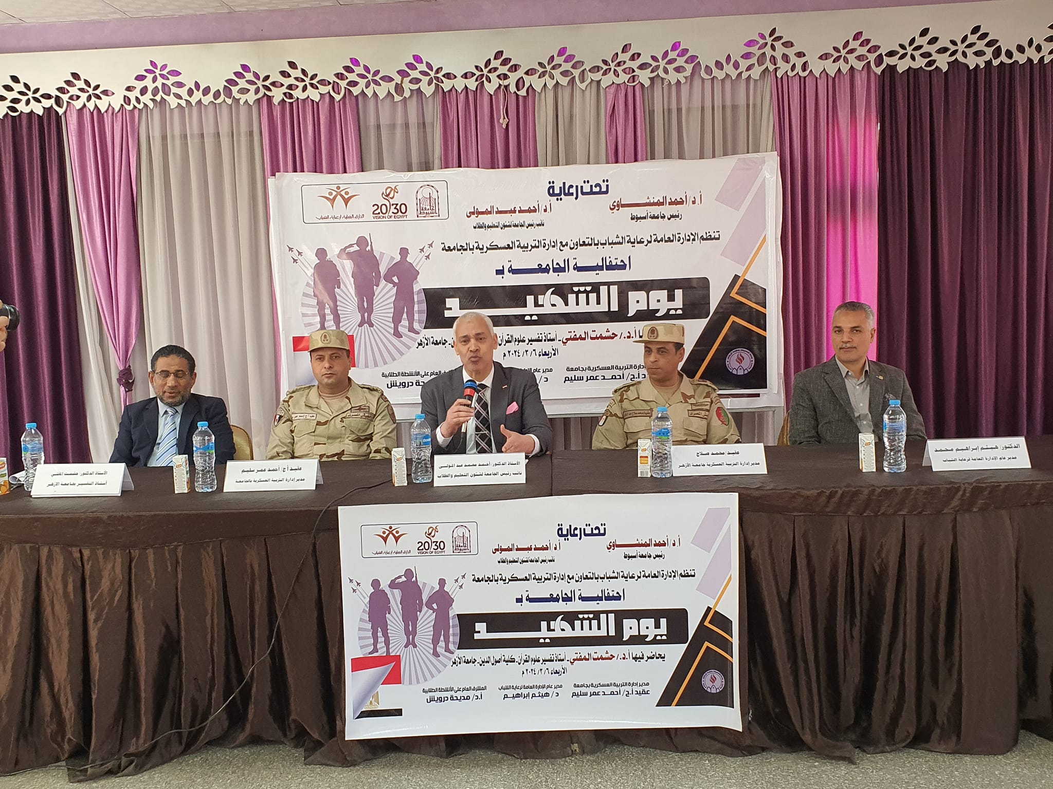 نظمت اليوم الإدارة العامة لرعاية الشباب بالتعاون مع ادارة التربية العسكرية بالجامعة احتفال بيوم الشهيد وتضمن الاحتفال في البداية بالوقوف دقيقة حداداً على أرواح الشهداء ثم ندوة حاضر فيها الأستاذ الدكتور/حشمت المفتي أستاذ النفسير بجامعة الازهر عن إحياء ذكرى يوم الشهيد، والذي يواكب ذكرى استشهاد الفريق عبد المنعم رياض في 9 من مارس، والملقب بالجنرال الذهبي واكد ان جموع الشعب المصري كافة يقدرون جيدًا التضحيات الكبيرة التي يقوم بها أبطال القوات المسلحة البواسل في السهر على حفظ الوطن