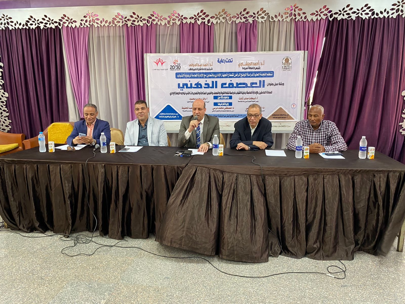 وتضمنت الورشه حضور الاستاذ/شوكت صابر أمين عام الجامعة رئيس اللجنه والاستاذ/وائل محمد أمين مساعد الجامعه عضو اللجنه والدكتور/مصطفي مرسي مدير عام نظم المعلومات والتحول الرقمي والاستاذ/جمال الدين عبد الحفيظ المدير الإداري لمركز ضمان الجوده وكان في أستقبالهم الاستاذ/أبو العلا عبد البارى مدير إدارة الجواله والخدمه العامه ومديري رعايه الشباب والساده العاملين بالقطاع وتناولت الورشه نقاط القوه والضعف والفرص المتاحة والتهديدات التي تواجه الجهاز الإداري وتم توزيع استبيان علي الساده العاملين بالقطاع