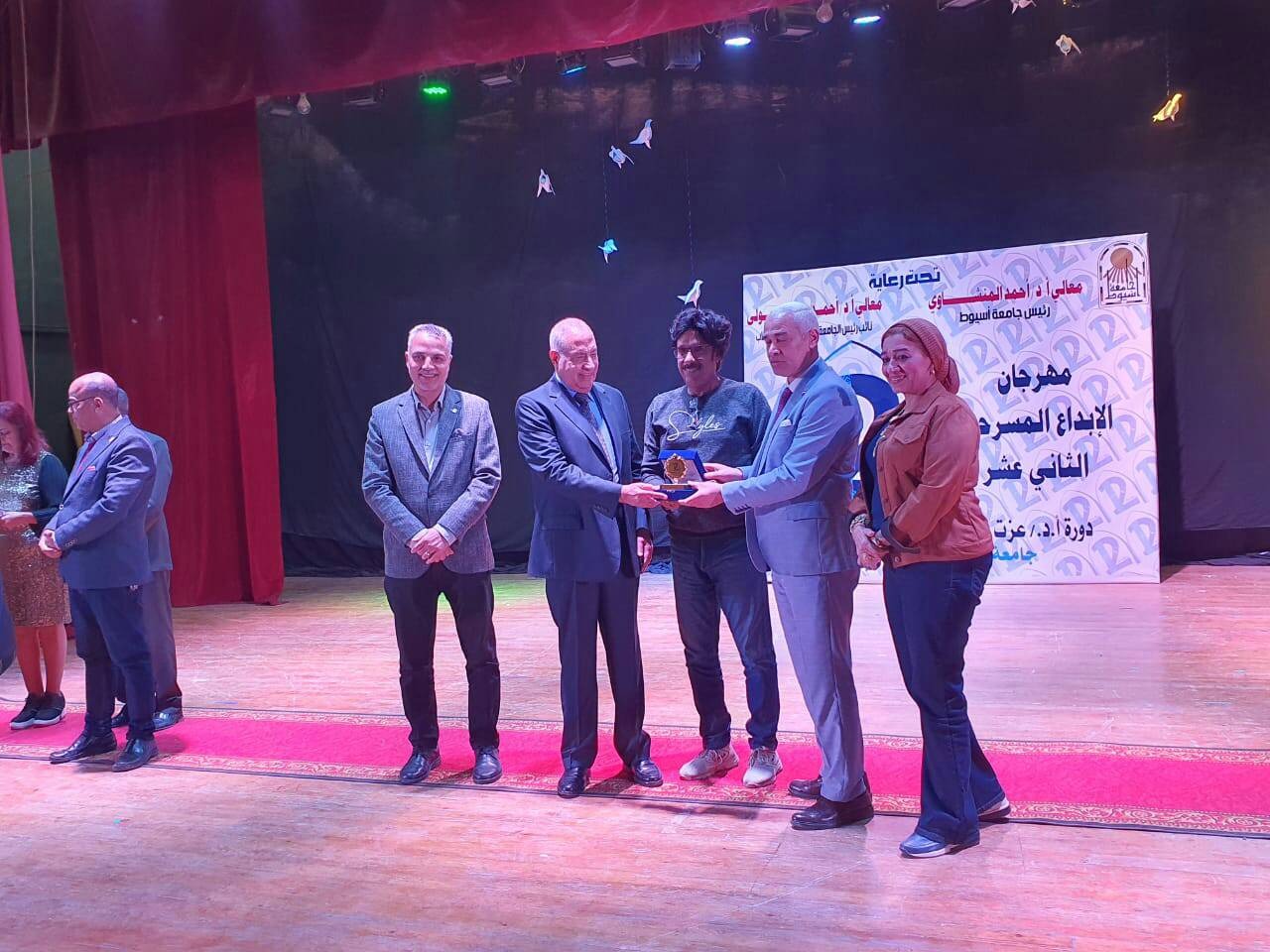 صور .. إدارة الفنون ..... قسم الفنون المسرحية والموسيقية .... الحفل الختامى لمهرجان " الابداع المسرحى الثانى عشر " تكريم صاحب الدورة الأستاذ الدكتور عزت عبدالله أحمد رئيس جامعة أسيوط الأسبق والسادة المكرمين من قبل أعضاء المهرجان بمسرح مركز النيل