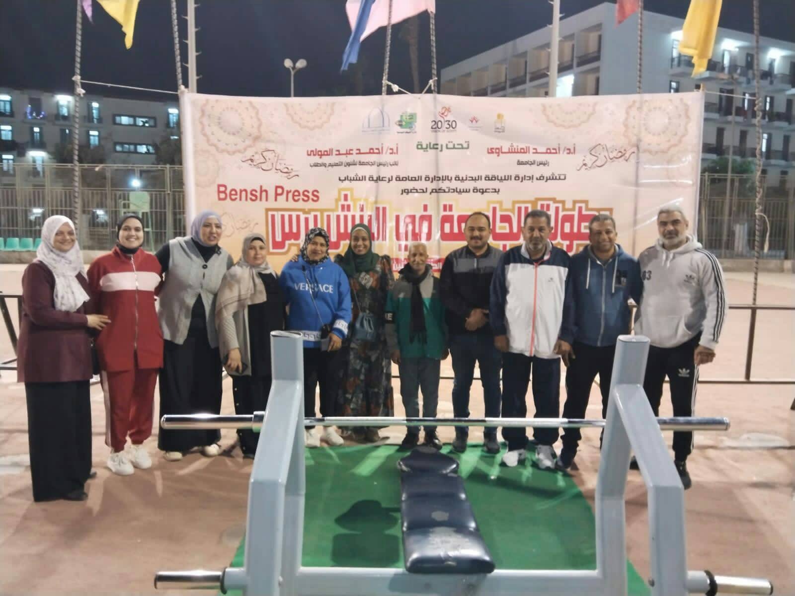 صور إدارة اللياقة البدنية .. فعاليات اليوم الثانى" بطولة الجامعة فى Bensh Press " بالملاعب المفتوحة للطلبة وسوف تعلن النتيجة وتسليم الجوائز يوم الأربعاء بقاعة حمام السباحة بالقرية الاوليمبية الساعة ٩ مساءا لجميع الطلبة والطالبات الفائزين