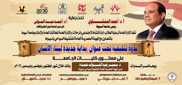 صور إدارة النشاط الاجتماعي بالإدارة العامة لرعاية الطلاب بالتعاون مع الإدارة العامة للعلاقات العامة والإعلام والهيئة المصرية العامة للتنشيط السياحى بأسيوط.. فعاليات ندوة تثقفية بعنوان" بداية جديدة لبناء الإنسان " في ضوء المبادرات الرئاسية بداية جديدة.