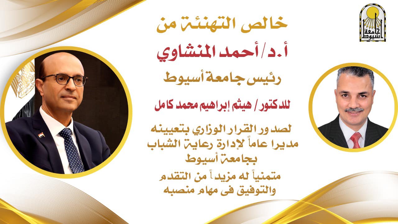 رئيس جامعة أسيوط يهنئ الدكتور هيثم إبراهيم بصدور القرار الوزاري بتعينه مديرًا لإدارة رعاية الشباب بالجامعة