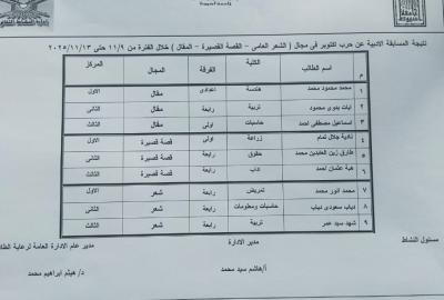 كلية التربية-حصول طلاب الكلية على مراكز متقدمة في مسابقة " لوحة في غنوة " التي تنظمها الإدارة العامة لرعاية الطلاب على مستوى الجامعة