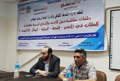 فاعليات اولى الحلقات النقاشية حول الأدب والإبداع لتنمية مهارات الطلاب فى الشعر - -القصة -الرواية- المقال -التأليف - ادارة النشاط الثقافى بالإدارة العامة لرعاية الطلاب
