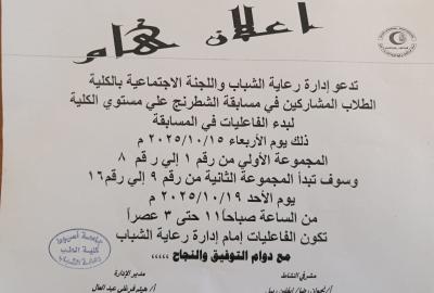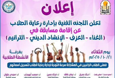 كلية الاداب-اعلان عن اقامة مسابقة في ( الغناء- العزف- الانشاد الديني-الترانيم)