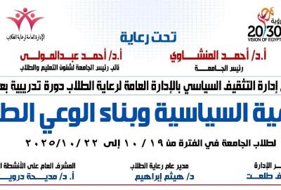 دورة تدريبية بعنوان التنمية السياسية وبناء الوعى الطلابى ... إدارة التثقيف السياسى بالإدارة العامة لرعاية الطلاب