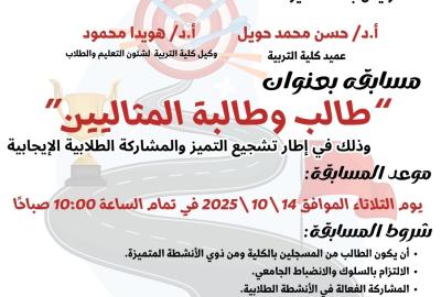 كلية التربية-تعلن عن إقامة مسابقة الطالب والطالبة المثاليين