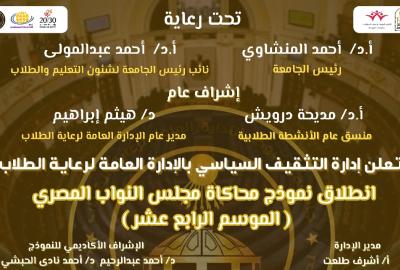 إعلان عن انطلاق نموذج محاكاة مجلس النواب المصري فى موسمه الرابع عشر لطلاب جامعة أسيوط - ادارة التثقيف السياسى بالإدارة العامة لرعاية الطلاب