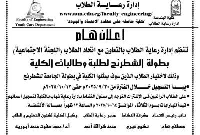 كلية الهندسة- اعلان عن بطوله الشطرنج لطلبة وطالبات الكلية