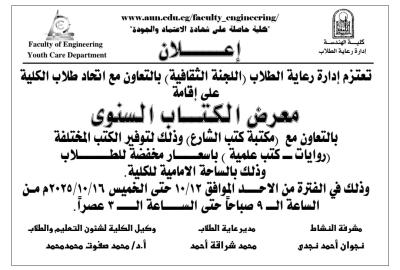 كلية الهندسة- تعلن عن معرض الكتاب السنوي