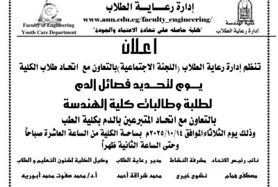 كلية الهندسة-تعلن الكلية عن يوم لتحديد فصائل الدم لطلبة وطالبات الكلية