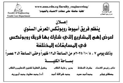 كلية الهندسة-ينظم فريق اسيوط روبتكس المعرض السنوي لعرض اهم المشاريع