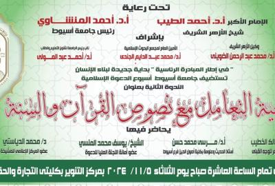 تكملة لفعليات سلسلة ندوات الدعوة الإسلامية التي تنظمها جامعة أسيوط بالتعاون مع الأزهر الشريف الندوة الثانية بعنوان " منهجية التعامل مع نصوص القرآن والسنة "